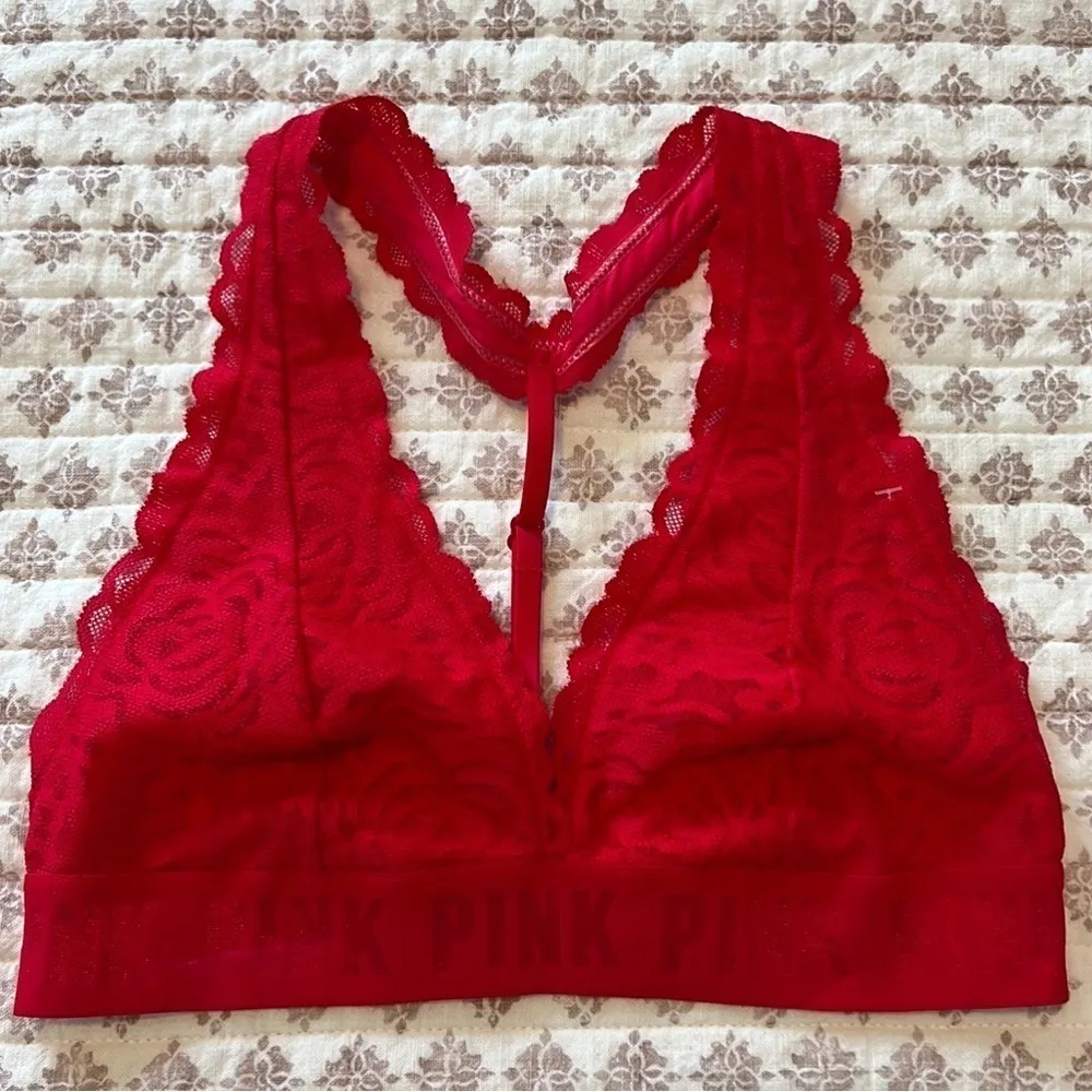 VS Pink Logo Band Lace Racerback Bralette Red Size Small Excellent Pre-Owned Condition Pretty red... Show more