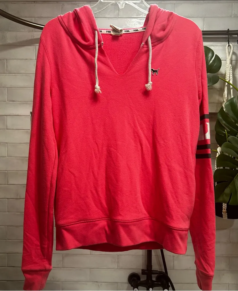 Women’s NEON Pink PINK V-Neck Hoodie Sweatshirt M Medium - $15 - From D
