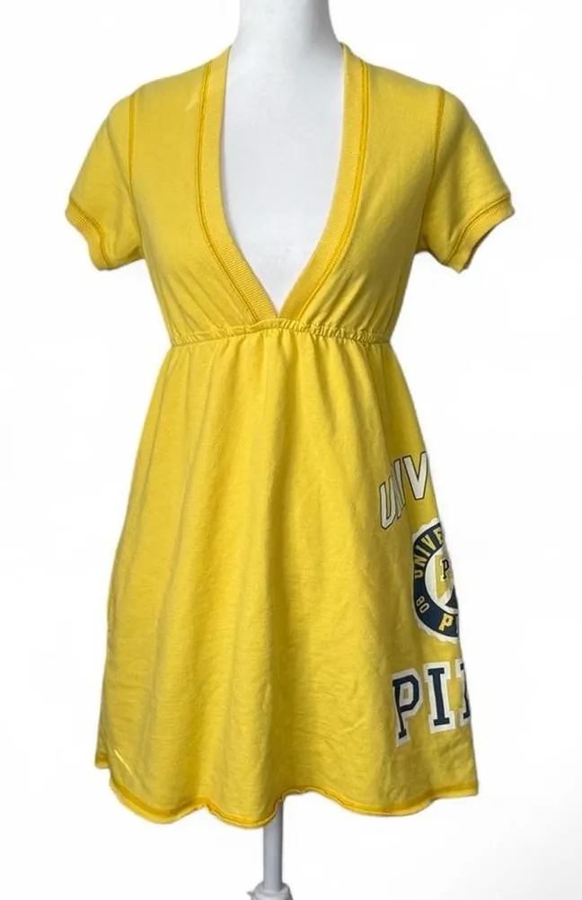 Small 15” pit to pit Pink university French Terry dress Plunge neck Pockets 2008 Perfect as a beach... Show more