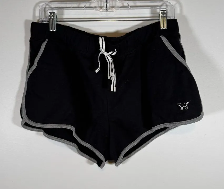 These are iconic "dolphin-style" lounge shorts featuring a contrasting grey binding/trim. They inclu... Show more