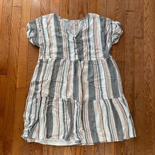 pink white gray striped tiered babydoll dress - $8 - From Emma