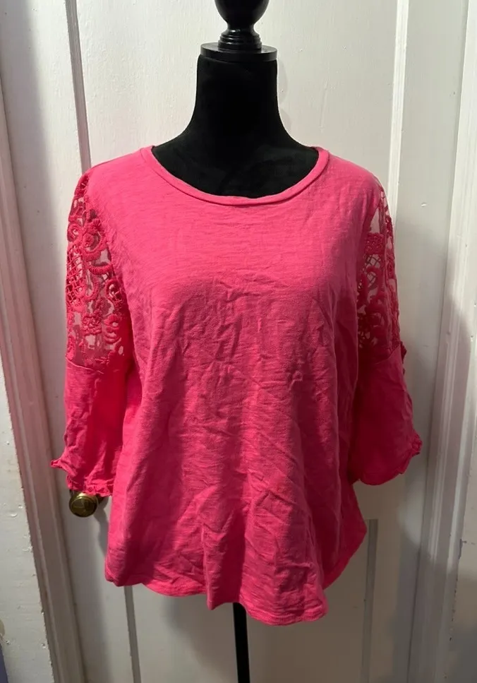 The PinkBlush Pink Long Sleeve Top with Lace Detail in M is a stylish and versatile blouse perfect f... Show more