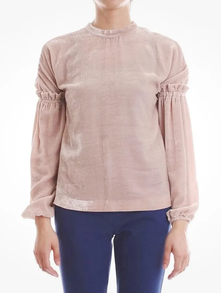PINKO CASSIOPEA 1B12U3 Long Sleeve Velvet Blouse Bishop Tie Neck Rose Pink M Size M - $100 - From Eva