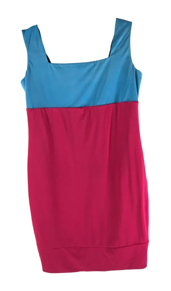Small stain visible near neckline on blue side. Please see pictures. Size tag has been removed but dress measures at a size XS/2. Armpit to armpit: 16 Length (shoulder to hem): 33 Waist: 14.5 • Reversible design with contrasting colors • Square neckline and sleeveless fit • Features Pinko logo accents • Stretchy and lightweight fabric • Knee-length Comes from a smoke free home. Feel free to ask any questions you may have. Thanks for looking!