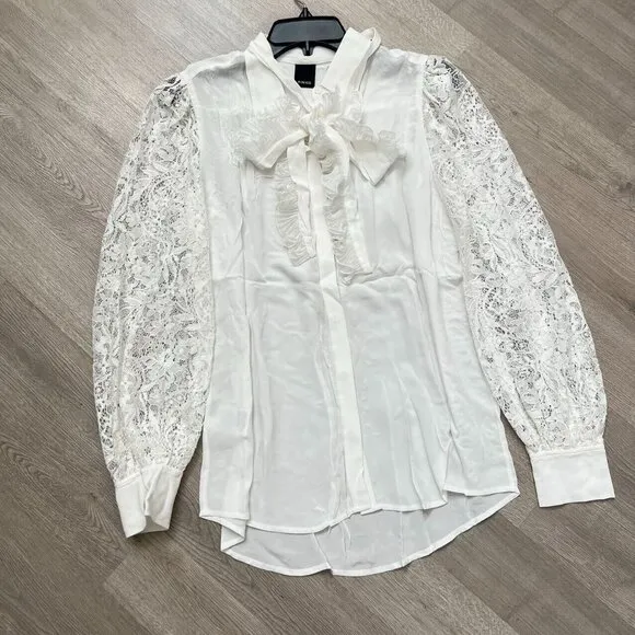 PINKO Womens Lace Ruffles Size 6 Bow White Long Sleeve Blouse Shirt NWOT - $120 - From Angela