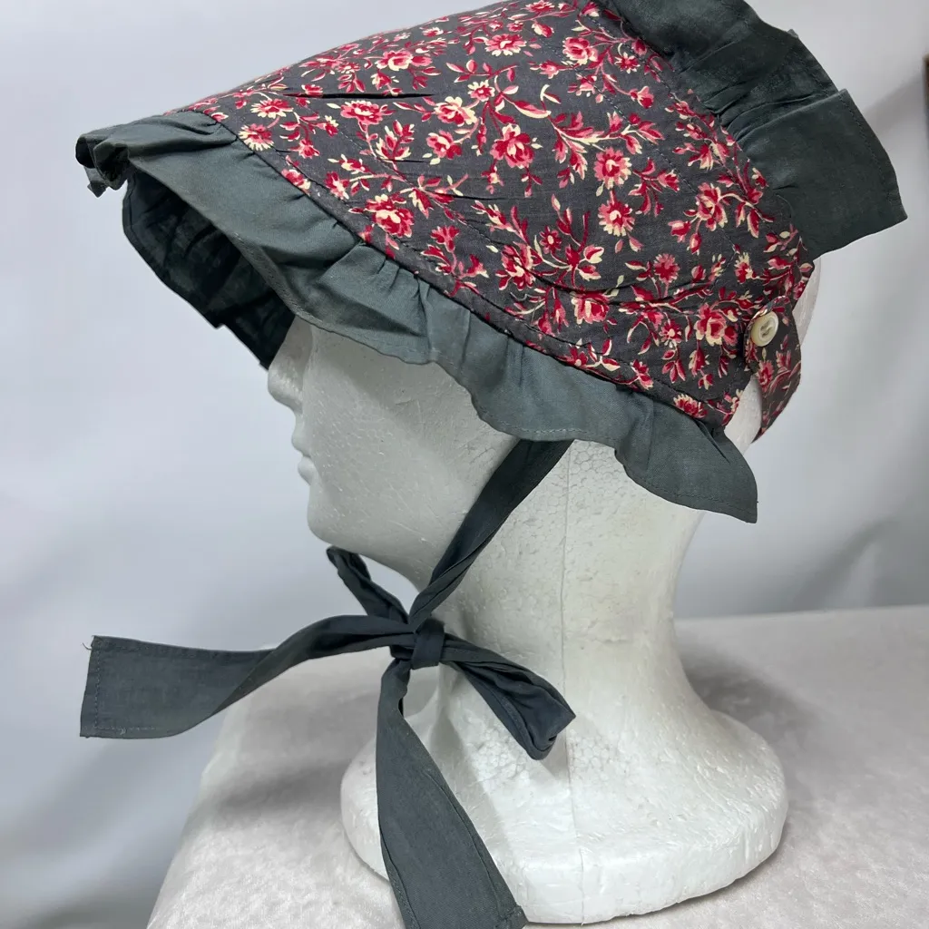 Pioneer Floral Gray Bonnet frontier style country costume pilgrim prairie cap - $24 - From Maricella