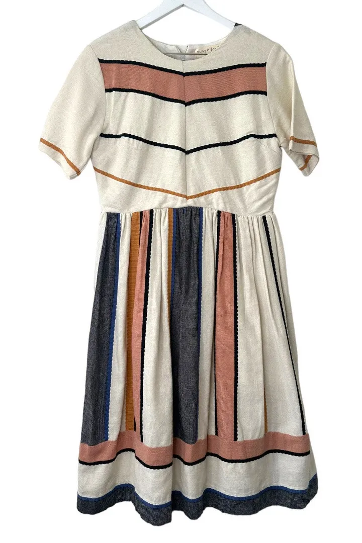 Piper & Scoot Striped Short Sleeve Cotton Midi Eleanor Dress Size XS 100% cotton Fully lined Zipper... Show more