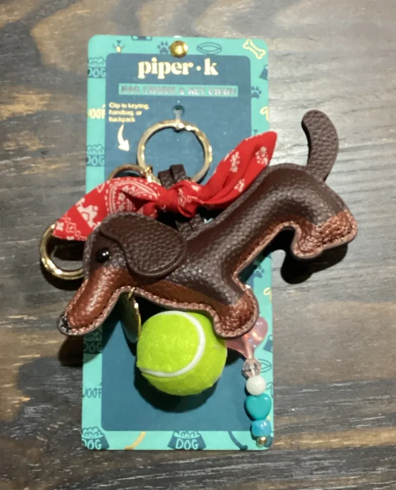 Piper K Brown Dachshund Keychain Bag Charm with Red Bandana and Tennis Ball - $49 New With Tags - From Michelle