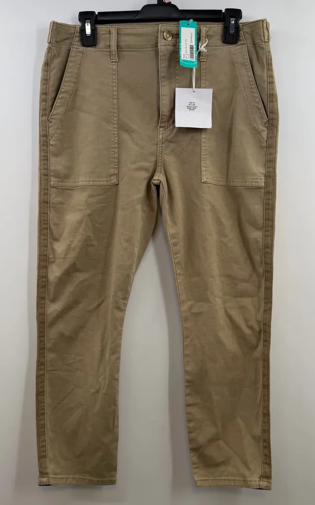New with tag size 10/30 Sold through Stitch Fix high-rise, cropped, straight-leg trousers with stretch Fabric: Stretch denim, composed of a blend of cotton, viscose, and spandex. Fit: High-rise with a cropped, straight-leg cut. Details: Flat front design. with patch pockets - Cropped length - Flat front - Big front utility pockets - Skinny, straight leg - khaki - Fold over back pockets approximate hand measurements waist: 16" flat across rise: 11.5" inseam: 24"