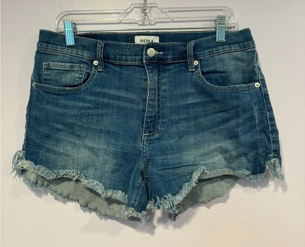 Stylish and comfortable, these Pistola denim shorts are perfect for casual outings. Featuring a classic blue color, they offer a versatile look for any wardrobe. Size 31 10 inch rise