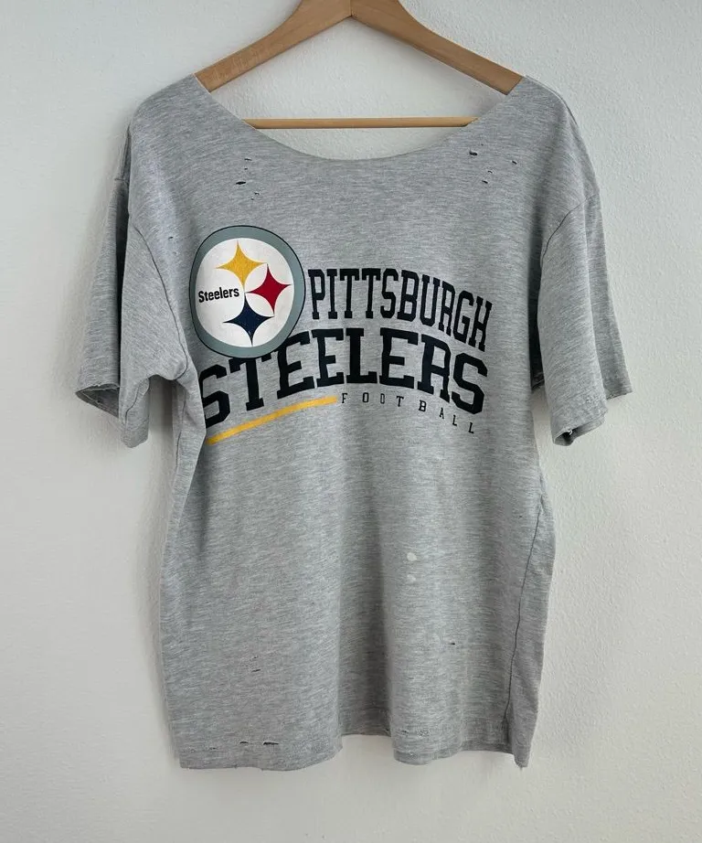 Pittsburgh Steelers NFL Football Gray Heather Destroyed short sleeve T-shirt. soft hand feel knit... Show more