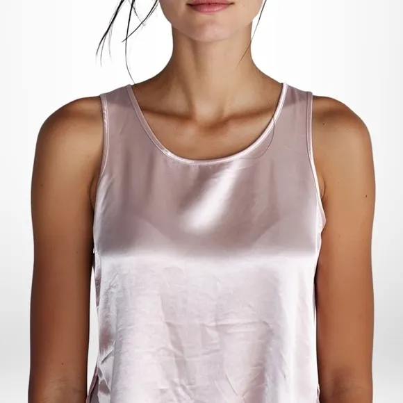 New with tags XS Scoop neck High/low with side slit Relaxed drapey silhouette 54.9% Rayon, 45.1% Silk Machine wash cold, tumble dry low Made in the USA MSRP: $62 Chest: 18" Front length: 24" Back length: 29" PJ Harlow Jackie cami, satin silk blend tank, blush pink loungewear top, luxury satin camisole, made in USA sleepwear, soft silky lounge tank, minimalist chic layering top, PJ Harlow blush tank, women’s luxury loungewear, Christmas gift