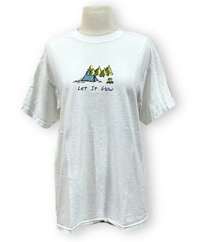 Let It Glow Camping Graphic T-Shirt by Co-Edikit Size Medium Tent with a campfire nestled in the tre... Show more