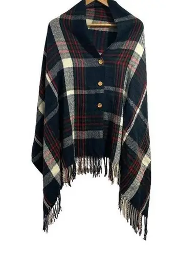 Plaid poncho like new button & fringe detail one‎ size fits most - $20 - From Adriana
