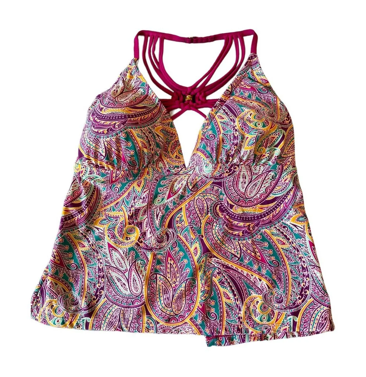 Playa Swim paisley print halter tankini top for women. This vibrant tankini features a flattering em... Show more