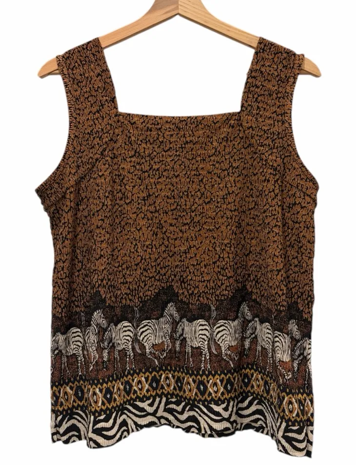 Pleat Pleat by RAFAEL Brown Zebra Safari Print Tank Top in size Large. Bold animal pattern with zebr... Show more