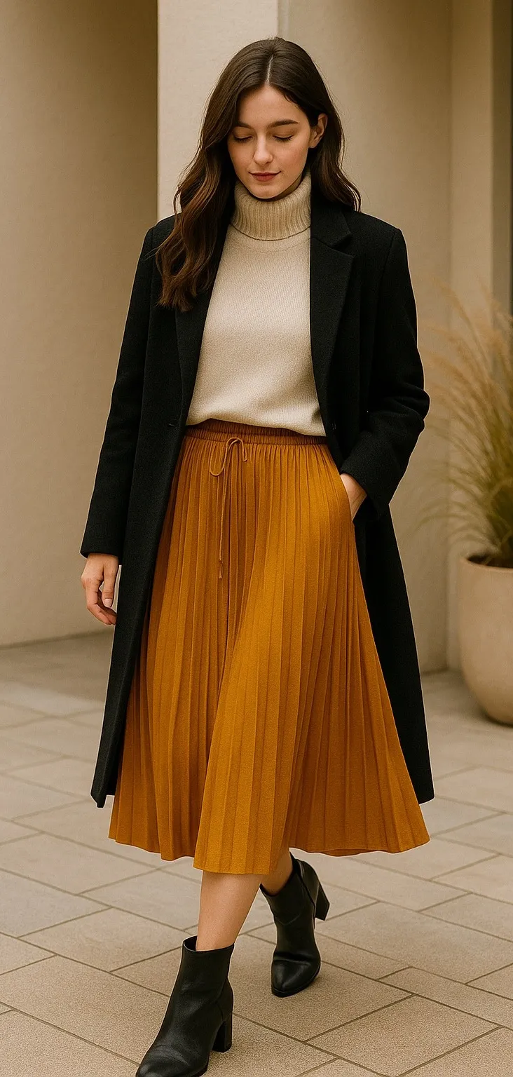 Brand: n/a Style: Pleated Midi Skirt Size: Women's Medium (based on measurements) Color: Mustard / Golden Yellow Material: 92% Polyester, 8% Spandex Closure: Pull-on elastic waistband with drawstring Length: Midi Condition: Excellent pre-owned condition. Clean with no holes or stains. Smoke-free home. ⸻ Measurements • Waist: 13 in (unstretched, elastic) • Length: 36¼ in • Hips: open silhouette (Measured flat, see photo for reference.) = Features • Soft pleated drape • Lightweight stretch knit • Elastic waistband • Golden mustard tone Style Notes This piece works beautifully for fall outfits and layering. The minimalist silhouette can be styled casual or dressy, and the pleated midi length gives a modern, feminine look. mustard skirt, pleated midi, elastic waist, minimalist silhouette, fall outfit, boho style, modest midi skirt, everyday casual, pull-on style, comfortable waist, golden yellow, neutral wardrobe. old money, minimalist, Pinterest outfit, fall aesthetic, boho wardrobe, soft neutral tone, cottagecore inspired