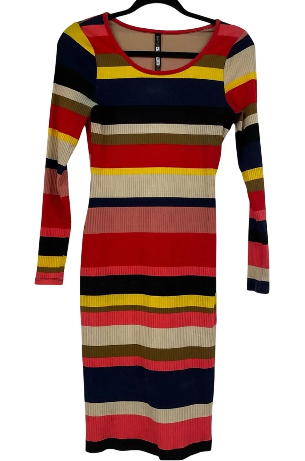 Plenty By Tracy Reese Red Yellow Striped Ribbed Knit Dress Knee Length XS Preowned has some color tr... Show more