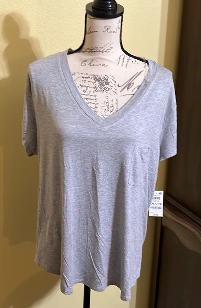 Alfani V- Neck Short Sleeve Lounge/Sleep Top. Size 2X. Color Grey Heather. 95% Rayon, 5% Spandex... Show more