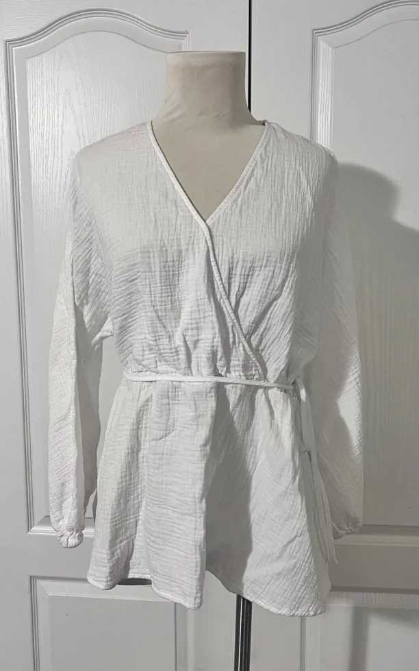 Plus Size Ava & Viv 100% Cotton‎ V Neck Blouse with Tie - sz X/14W White - $10 - From Madison