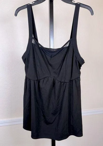 Lorena Rose Black Stretchy Mesh Panel Empire Waist Tank Top 1X Babydoll Camisole babydoll top camis... Show more