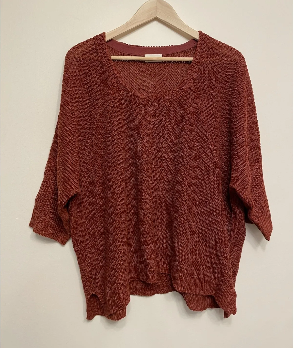 Poetry Half Sleeve Sweater Women 16/18 Brown 100% Linen Open Knit Boho Lagenlook - $33 - From Poppy