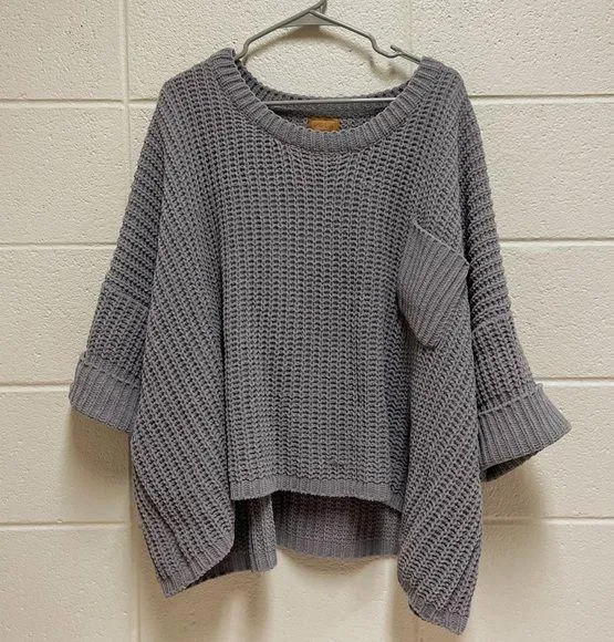 Super oversized, knit grey sweater by the brand POL. Size medium but definitely fits like a large/XL... Show more