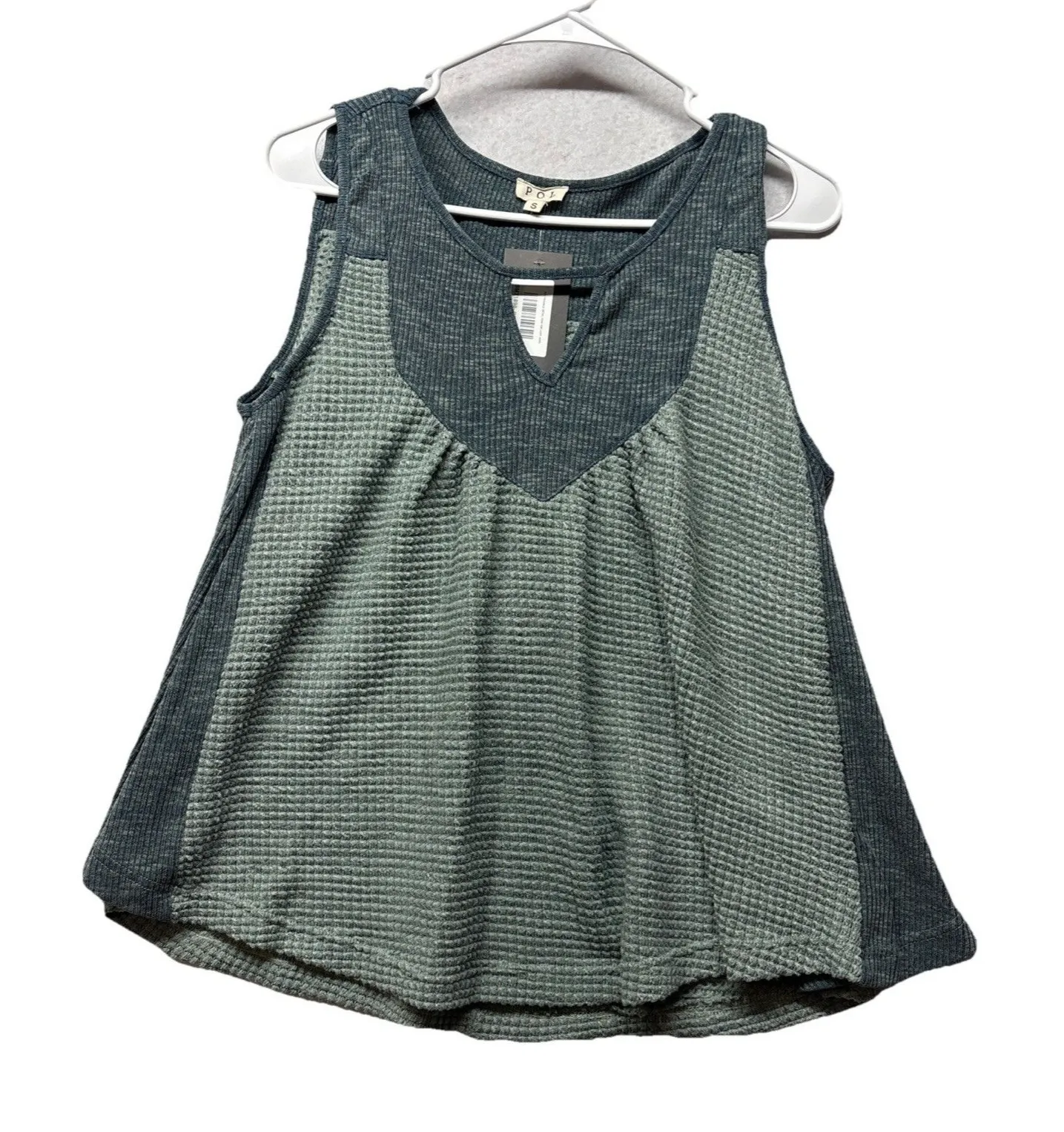 The Pol Just Jade Waffle Knit Women's Sleeveless Babydoll Tank Top Shirt in size small features a so... Show more