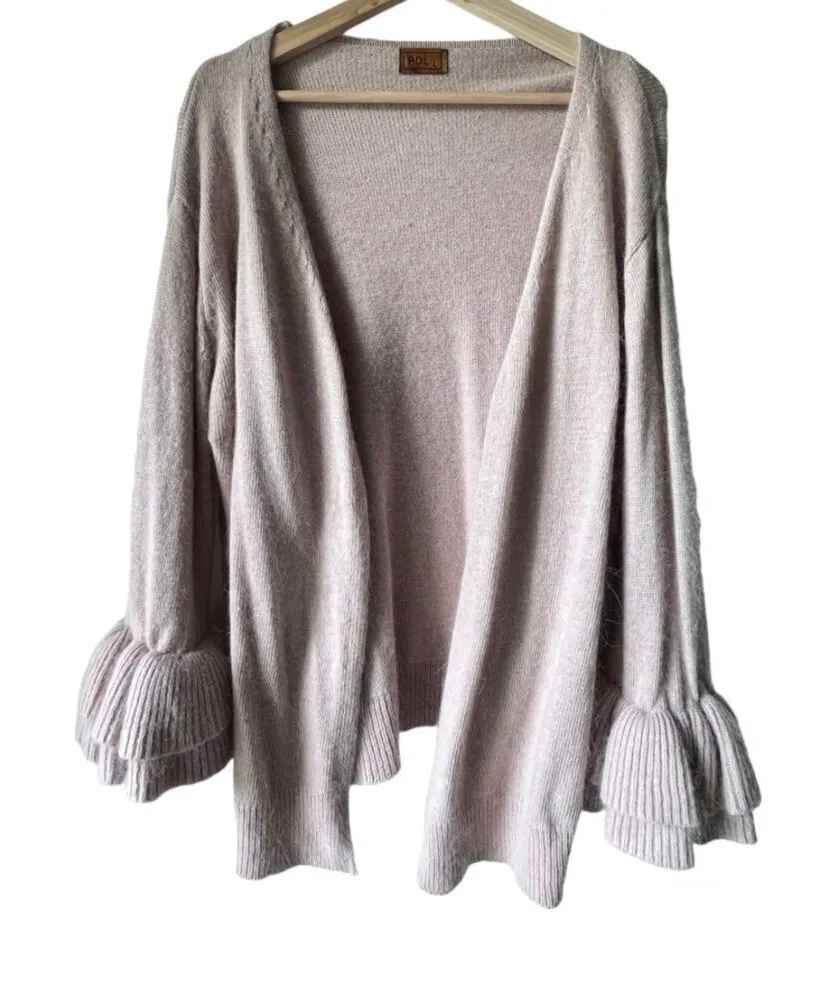 Women's sweater cream beige soft ruffle bell casual comfortable long sleeves L. Pink cream cardigan... Show more
