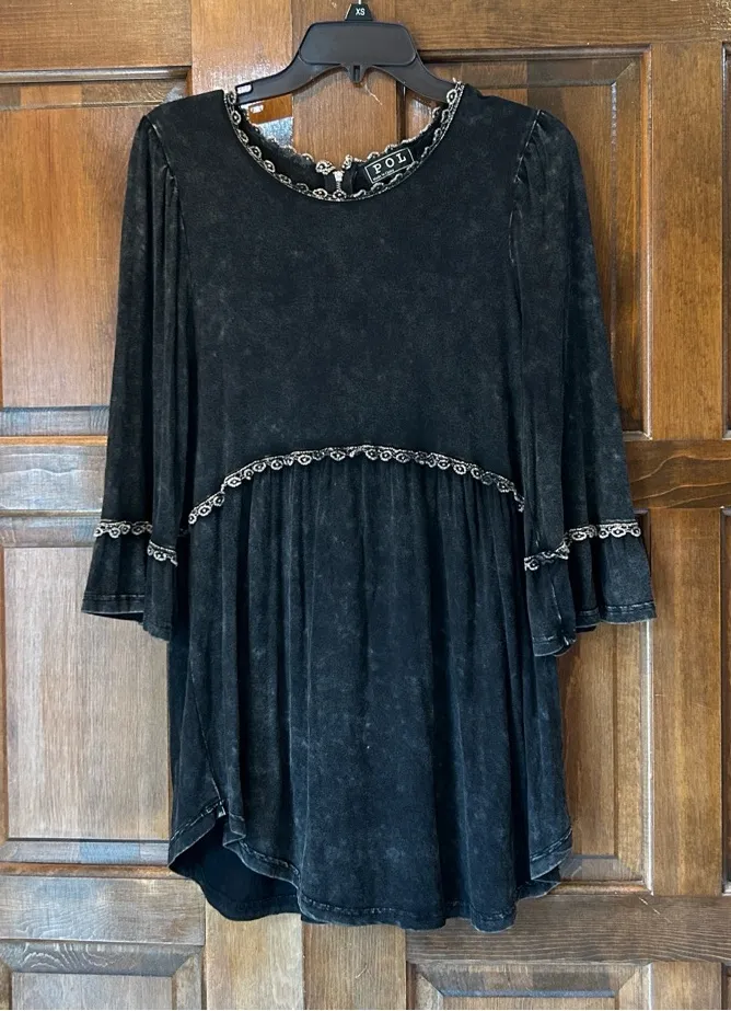 The product is a women's black tunic top from the brand POL, designed in a small size with an oversi... Show more