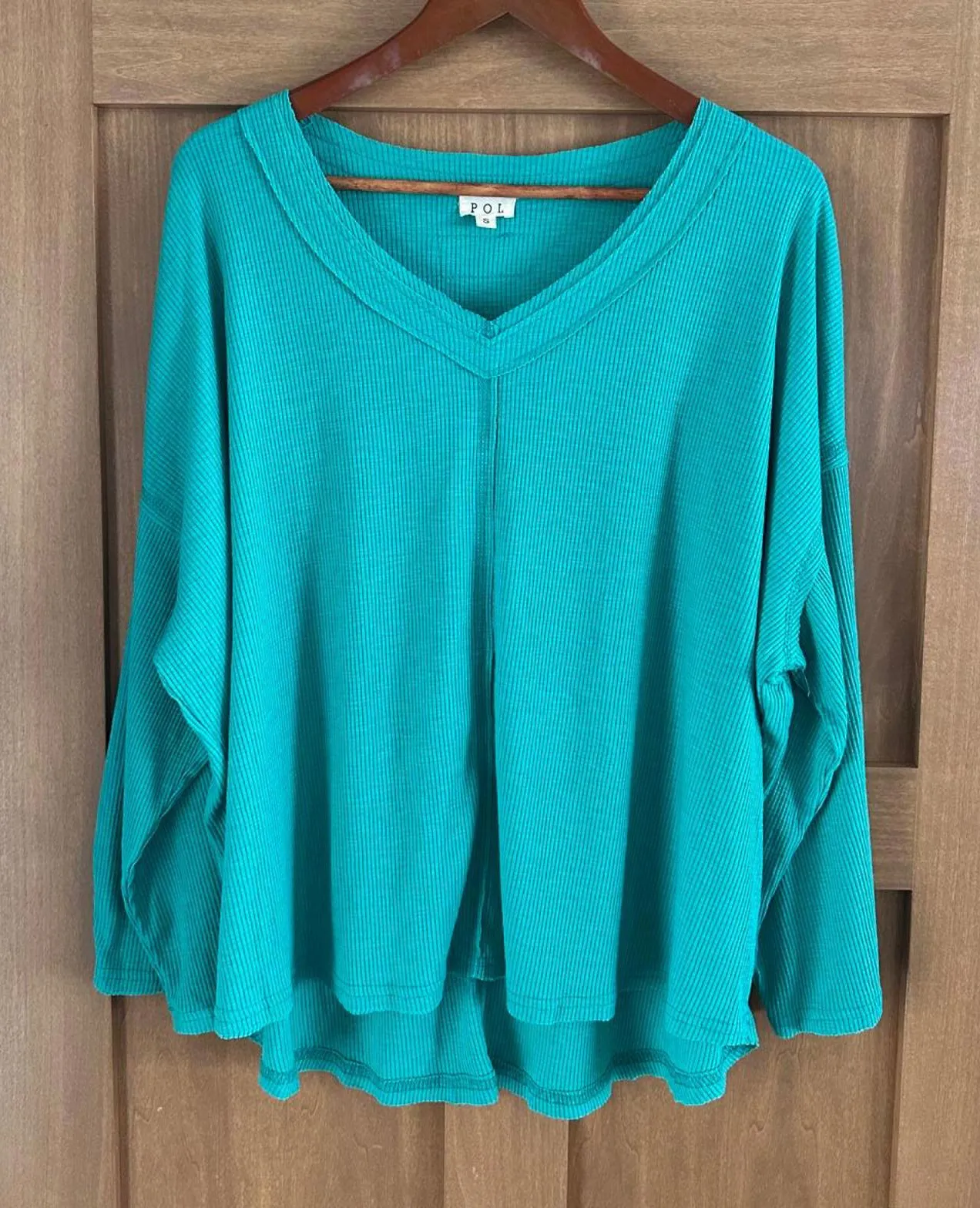 Excellent condition POL Wide Sleeve Oversized Thermal Knit Top Teal Blue / Green Women’s size Small... Show more