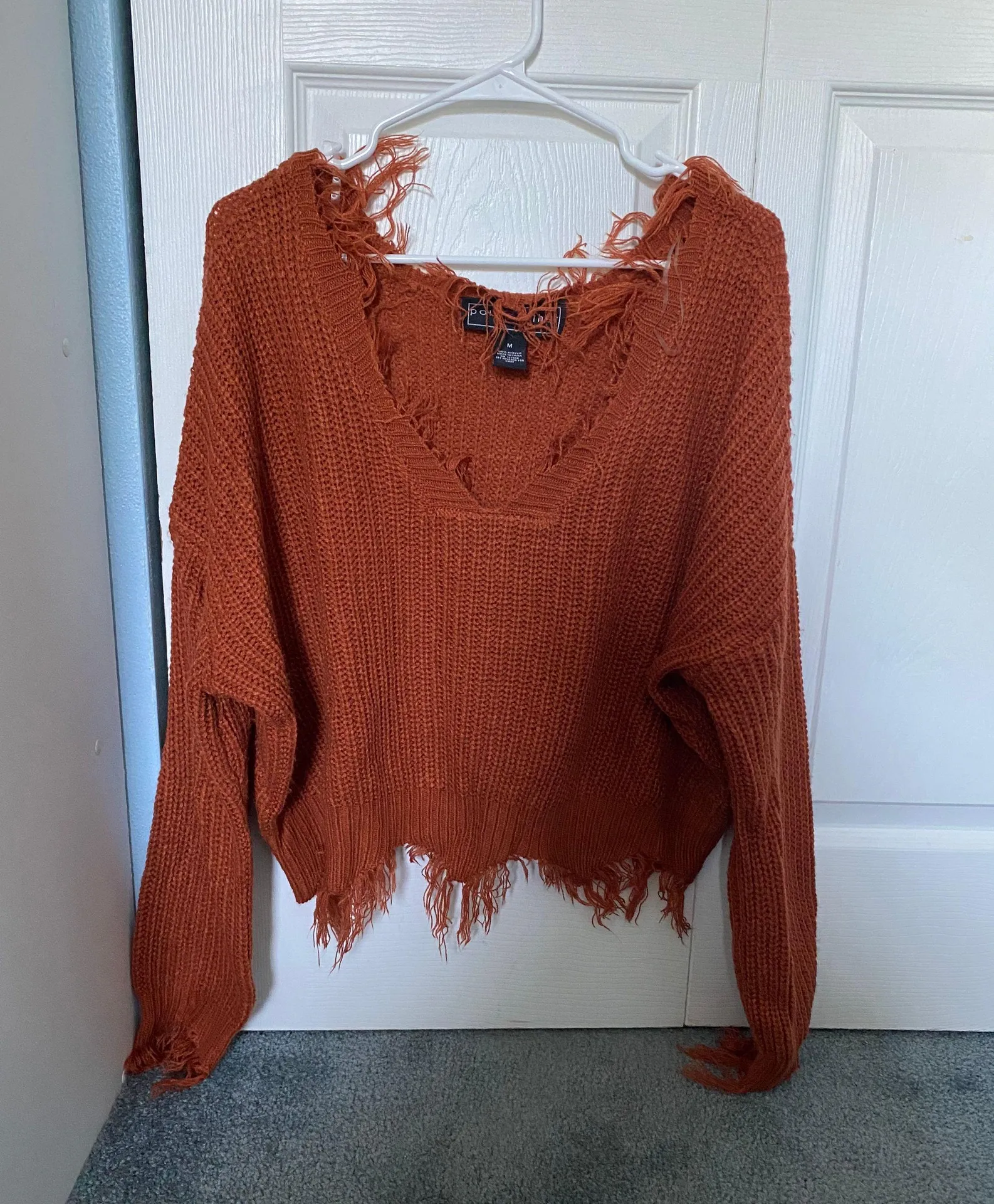 trendy frayed sweater dark orange color price is negotiable so make an offer