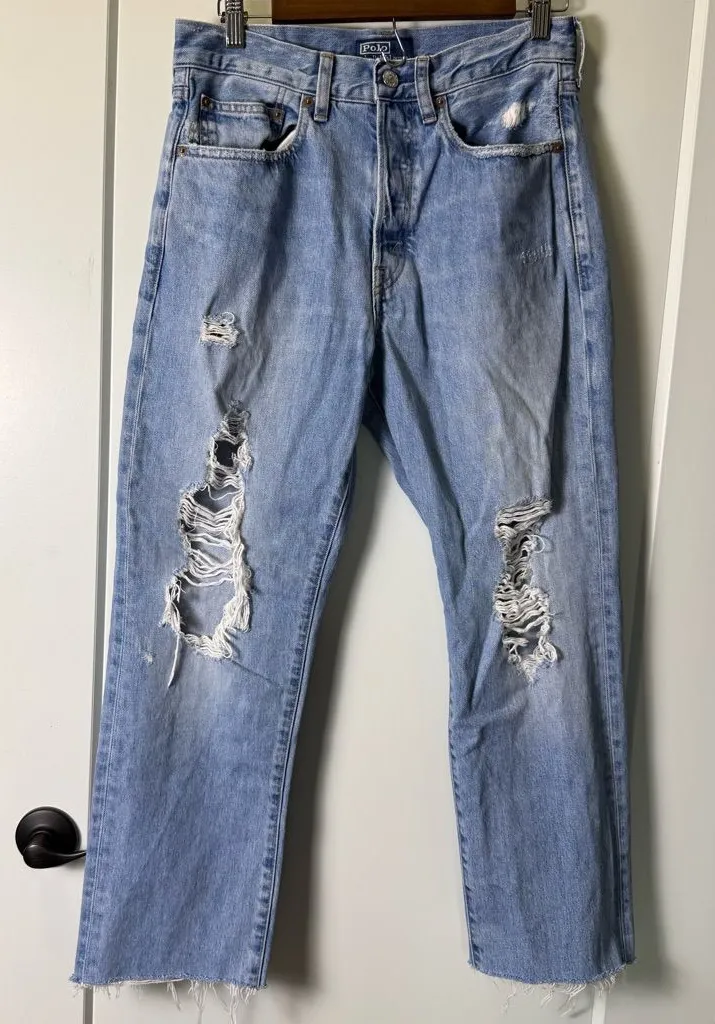 Polo by Ralph Lauren Wms Relaxed Straight Jean Distressed High Waist Button Fly Blue Size 26 - $60 - From Abbey