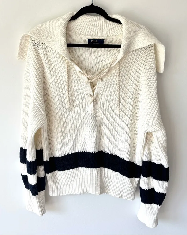 Great condition. Stunning oversized sweater with shawl like shoulders. Lace up chest. 100% cotton.... Show more
