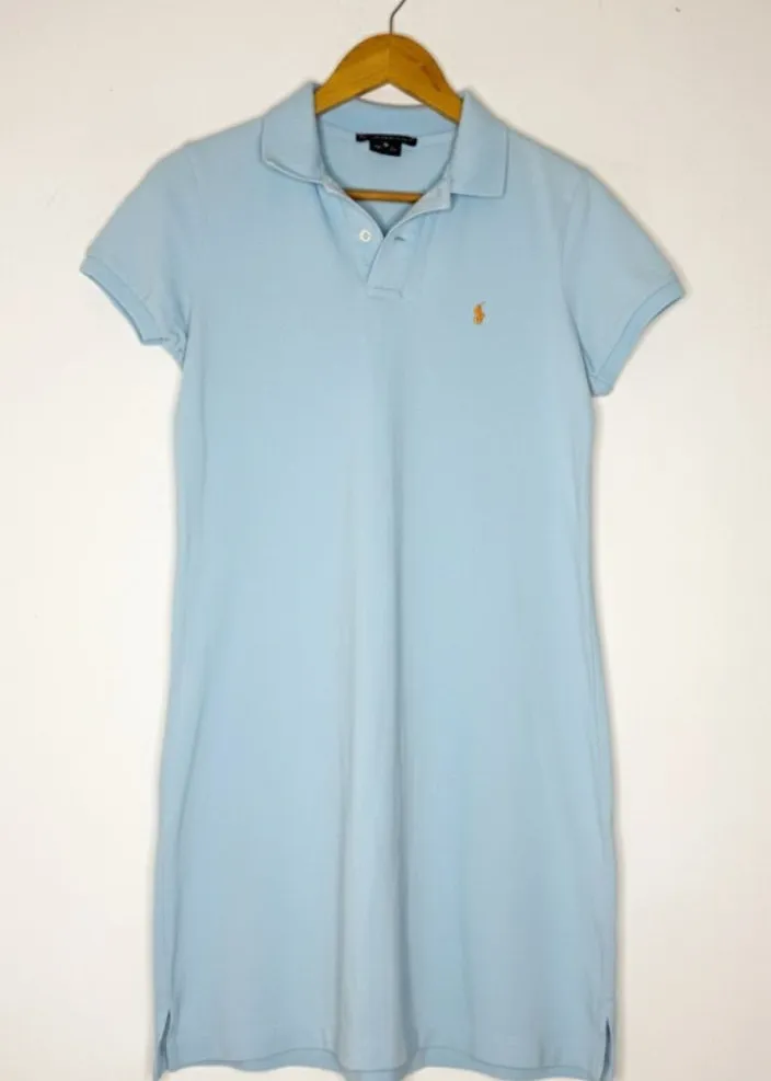 Stylish light blue polo dress with a classic collar and button detail. Perfect for casual outings.... Show more