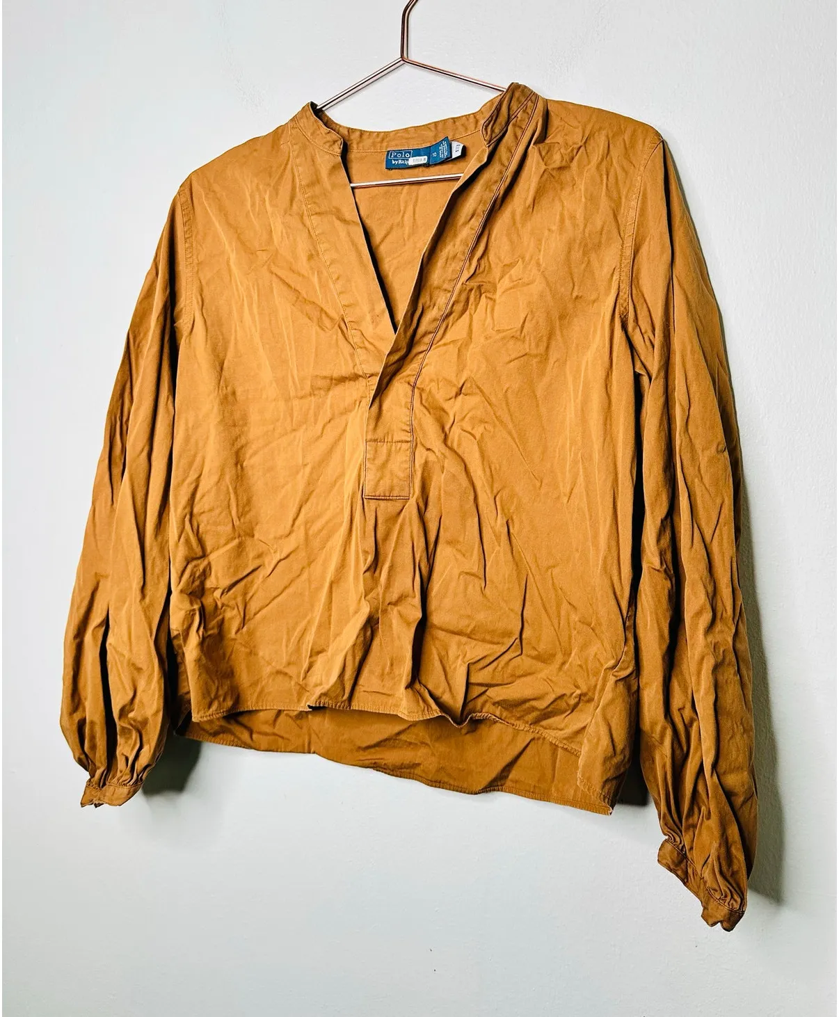Features: Brand: Polo Ralph Lauren Type: Shirt Size: 10 Color: Brown Tan Cropped Blouse Long Sleeve... Show more