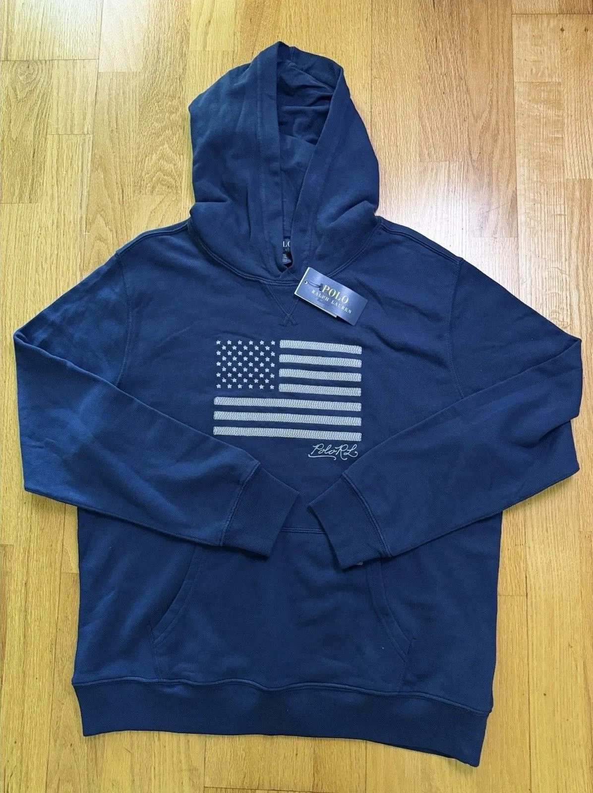 Polo Ralph Lauren American USA Flag Pullover Fleece Hoodie Sweatshirt. Navy Blue. Size XL (18-20). N... Show more