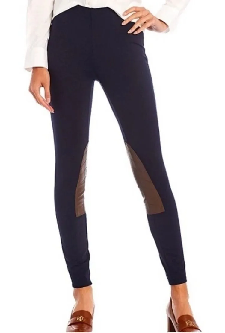 Polo Ralph Lauren women's navy blue riding pants featuring classic suede knee patches for enhanced g... Show more