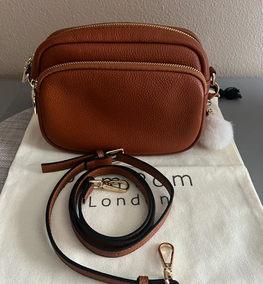 Pom Pom London Original Tan Brown Leather Crossbody Bag - $100 - From Priscilla
