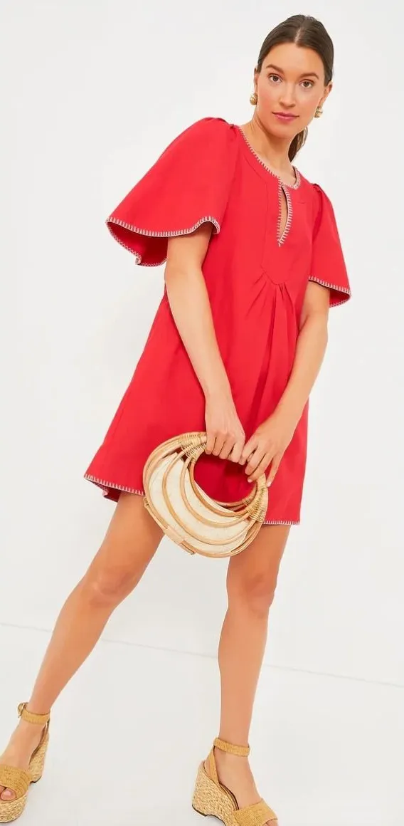 - Brand: Pomander Place - Size: Women's XL - Color: Red - Details: 100% Cotton, Notched Neckline, Oversized Flutter Sleeve - Condition: Excellent Pre-Owned - Preppy, Beachy, Coastal, Travel, Resort, Resortwear