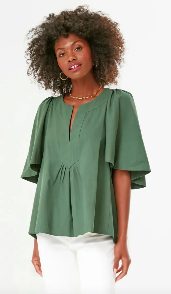 Pomander Place Finley Flutter Sleeve Top Womens XS Forest Green Cotton Preppy - $45 - From Nothing New
