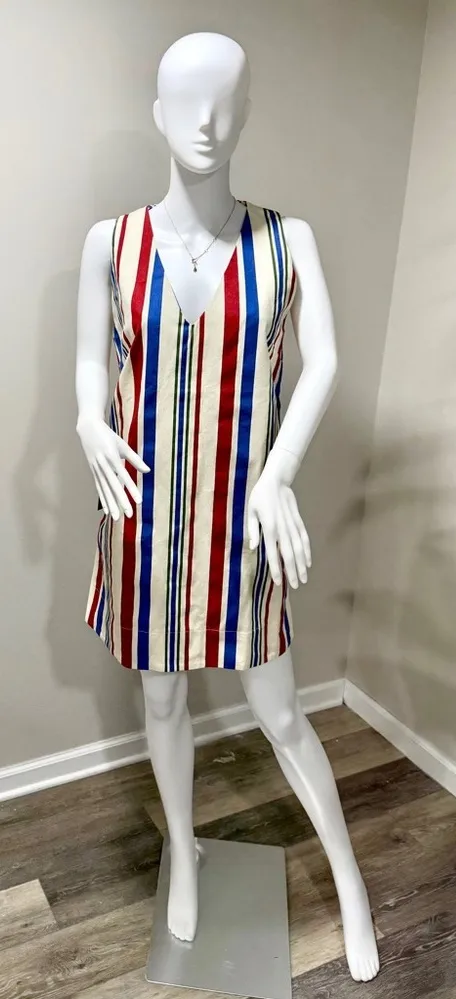 Your end-of-summer style just found its star. This Pomander Place “Kira” Mini Dress is a crisp, sleeveless stunner featuring vertical red, white, and blue stripes in a classic A-line cut. Whether you’re heading to brunch, a beach weekend, or strolling a boardwalk, this easygoing dress gives elevated coastal vibes without trying too hard. Fully lined for coverage and comfort, it’s made from breathable cotton with a touch of stretch—perfect for hot days or layering with a cardigan on breezy nights. 📏 Details: • Brand: Pomander Place (from Tuckernuck) • Style: Kira Mini Dress • Size: XS • Color: Multicolor Stripe (Red, White & Blue) • Fit: Relaxed A-line • Neckline: V-neck • Condition: New With Tags (NWT) • Material: 97% Cotton / 3% Spandex (shell) • Lining: 100% Cotton • Care: Machine washable • Original Retail Price: $128 ✨ Style Notes: Pairs perfectly with white sneakers, tan sandals, or espadrilles. Add a straw tote or gold jewelry for that effortless “coastal cool” finish. Great for transitional weather and late-summer travel. 📸 Actual item shown. More photos available upon request. 📦 Ships fast from a clean, smoke-free home.