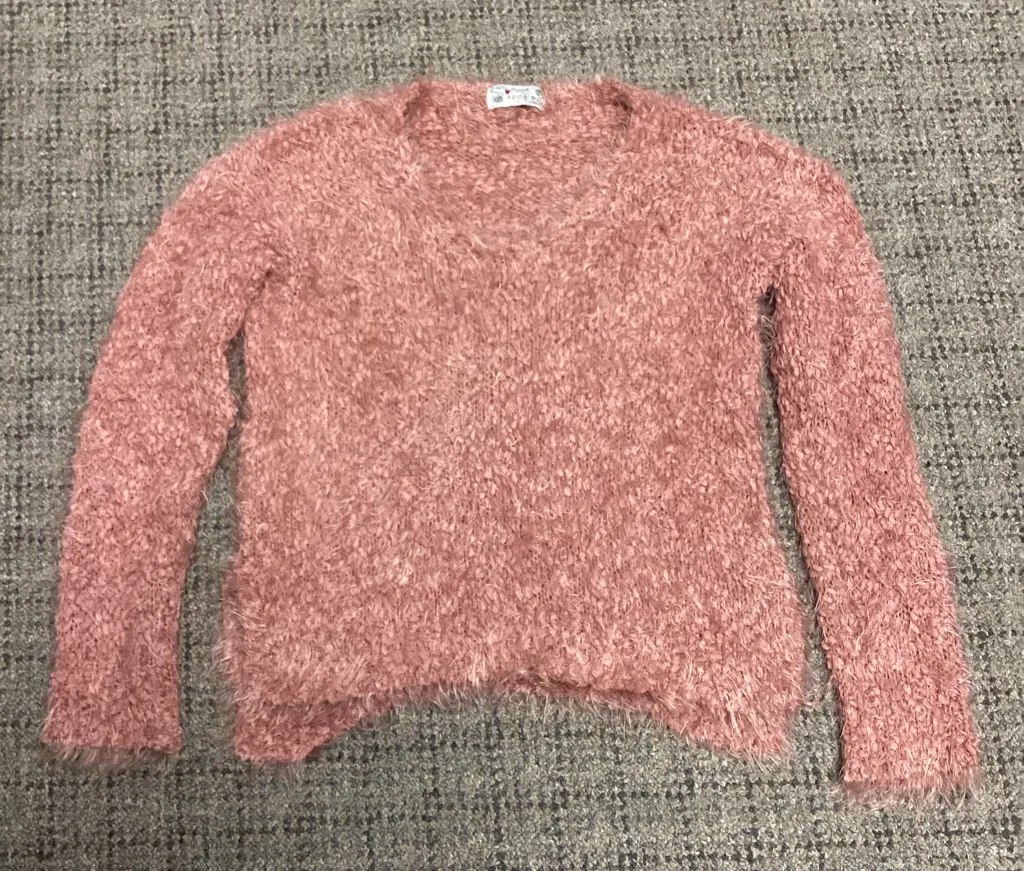 Poof Apparel Pink Dusty Rose Fuzzy Eyelash V-neck Sweater Size L (Fit me as a M) Preloved, EUC, ha... Show more