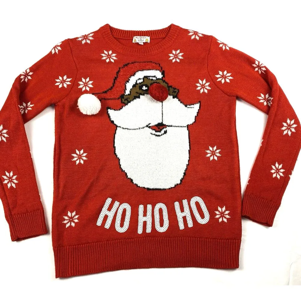 Merry Christmas Poof Sweater Size Small Christmas Party Black Santa Snowflakes @18"x24" Womens Mens... Show more