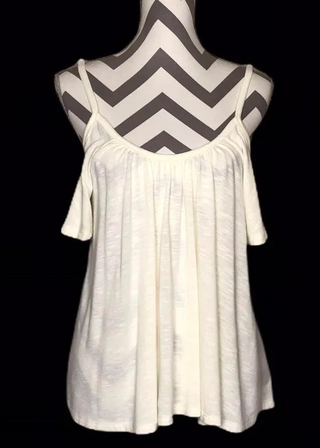 Poof-Cream Blouse w/adjustable straps-Butterfly sleeves w/cold shoulder cut-out-very soft-EUC-Sz Med... Show more