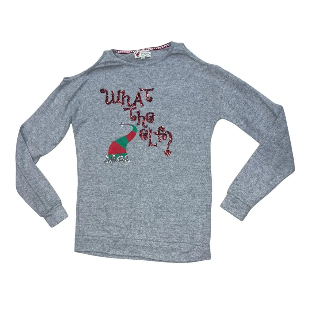 GUC - FLAW Poof What the Elf' Sweater Sequin Font JUNIORS Size Large Ugly Sweater Party, H... Show more