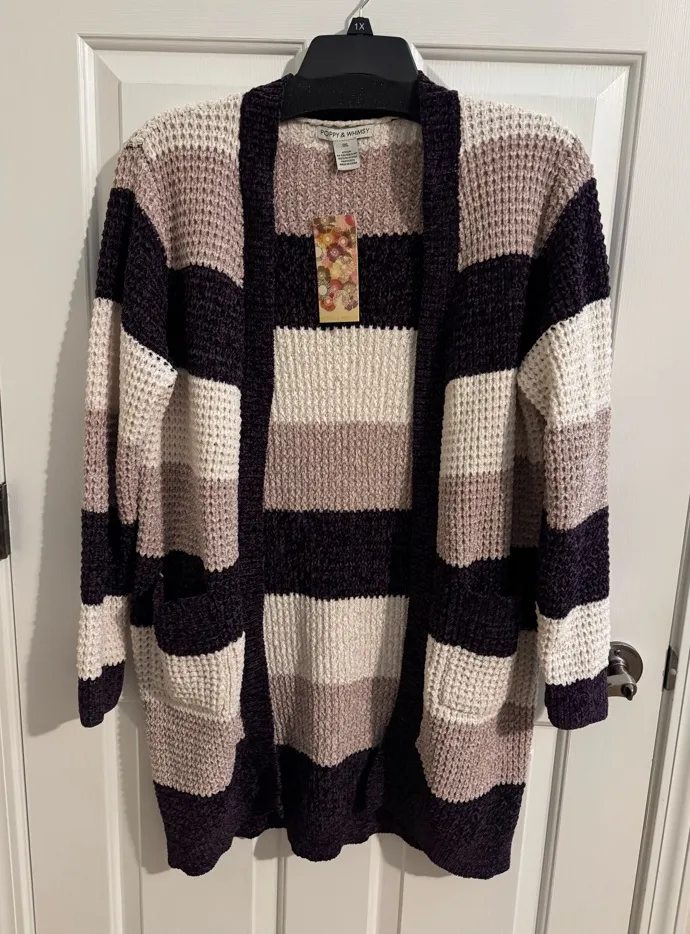 Poppy & Whimsy New Open Cardigan Plush Knit Stretch Purple Tan White Stripe 1X - $31 New With Tags - From Jo Jo