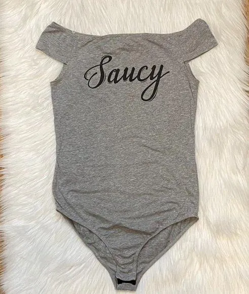 Popular Basics ‘Saucy’ Gray Off Shoulder Bodysuit Top ~ Gently preowned in great condition (no stains, holes or tears) Size: Medium Material: 95% Cotton; 5% Spandex Next Business Day Shipping! Check out my other Items - Bundle & Save on Shipping!