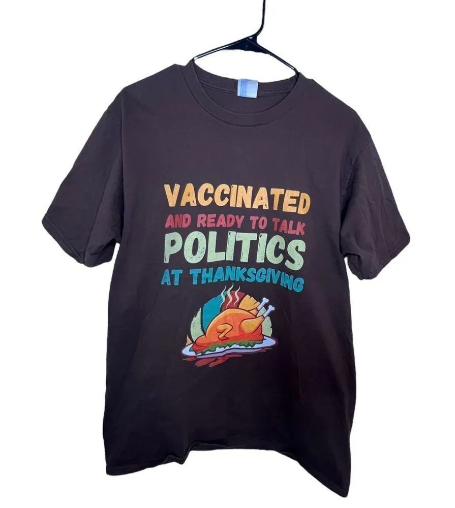All orders ship within 1-3 business days! Port and Company Funny Thanksgiving Graphic Short Sleeve T-Shirt Color: Brown, Yellow, Red, Blue Size: Large Fabric: 100%Cotton Measurements: Pit To Pit: 21in. Length (From Highest Point To Lowest Point): 29in. Excellent condition/No holes/No stains/No pilling/No Fade Smoke free home! Offers Welcome!