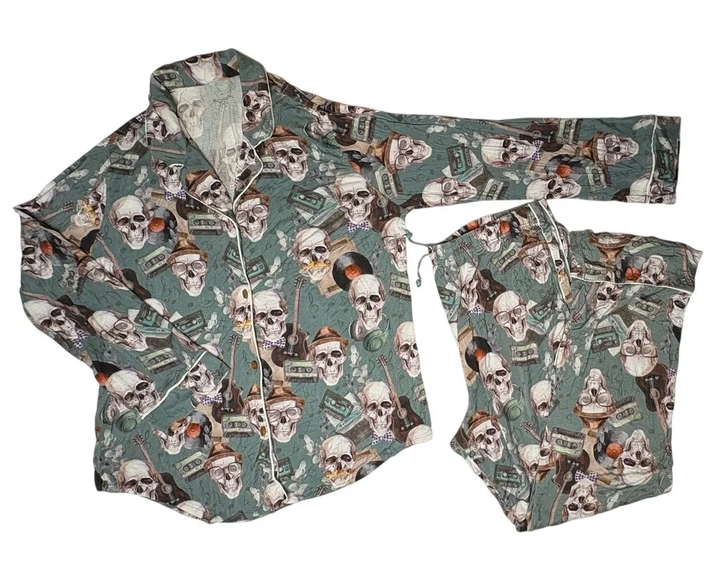 Posh Peanut Bamboo Luxe Sheldon Skull Lounge Pajama Pant Set Long Sleeves 2XL Green. Super adorable... Show more